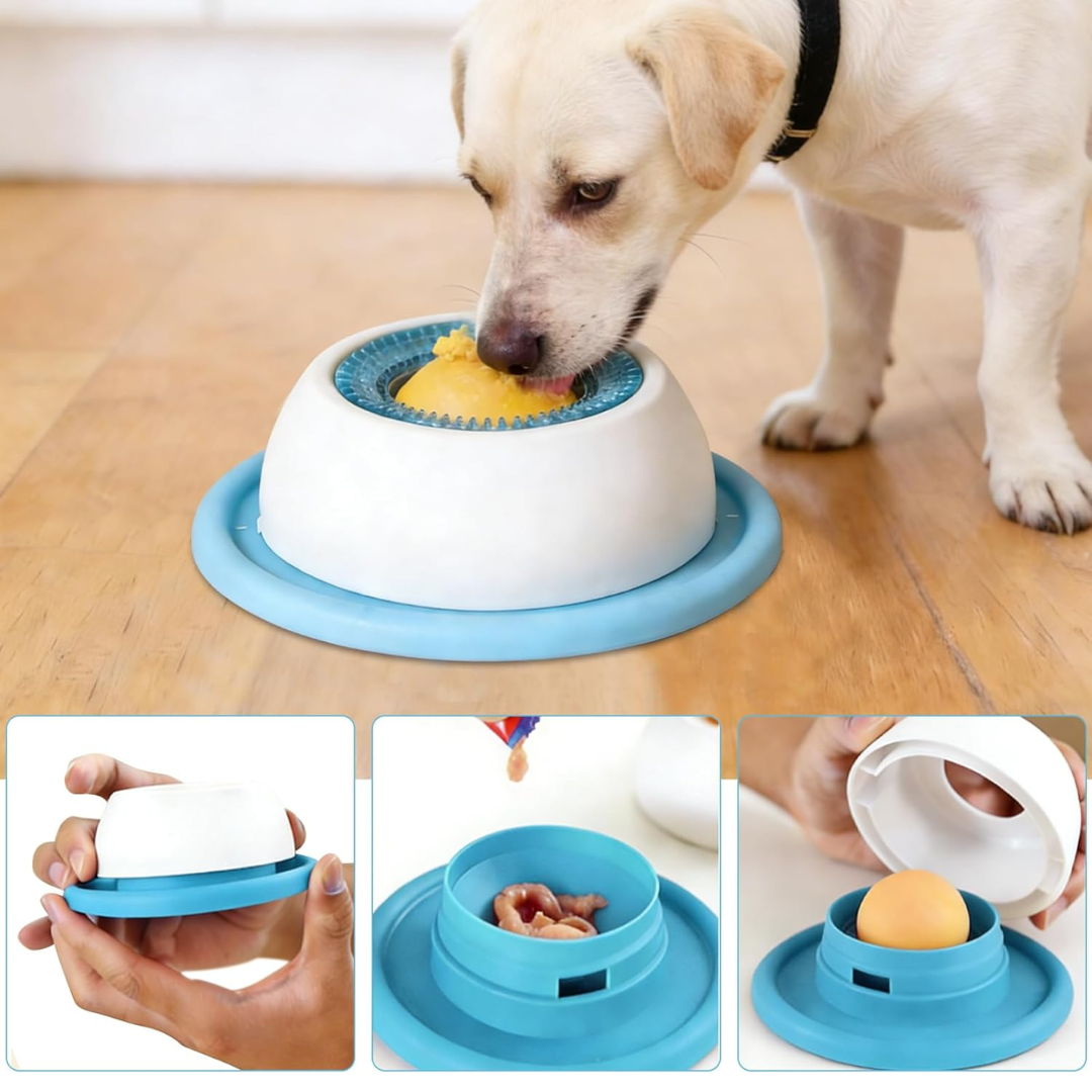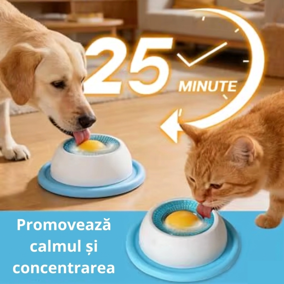 Se deschide, se umple cu gustarea lui preferată și gata. Câinele tău va face restul lingând încet, concentrat și fericit timp de câteva minute. Fără complicații, fără piese greu de curățat. Doar un moment de calm pentru el și liniște pentru tine. 🐾